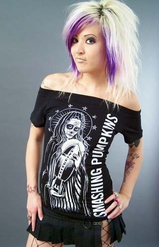 The banner paint is also representative in punk style clothing. No matter men or women could dress themselves in the t-shirt. And the t-shirt with the banner printed accent is very popular and welcomed by so many people. You can select the one with music band name, the political banner or some words on it.